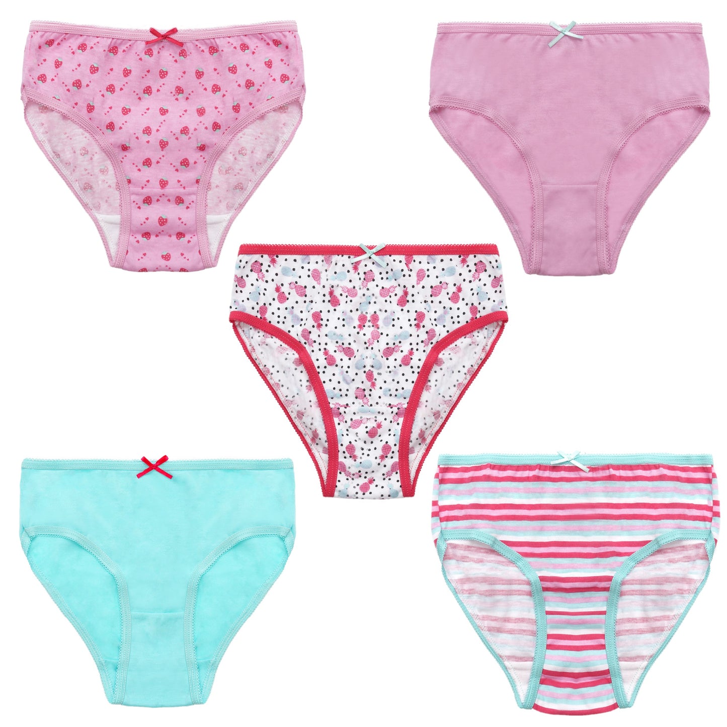 5 Pack Girls' Knickers Cotton Blend Fruit Print Jersey Underwear Briefs