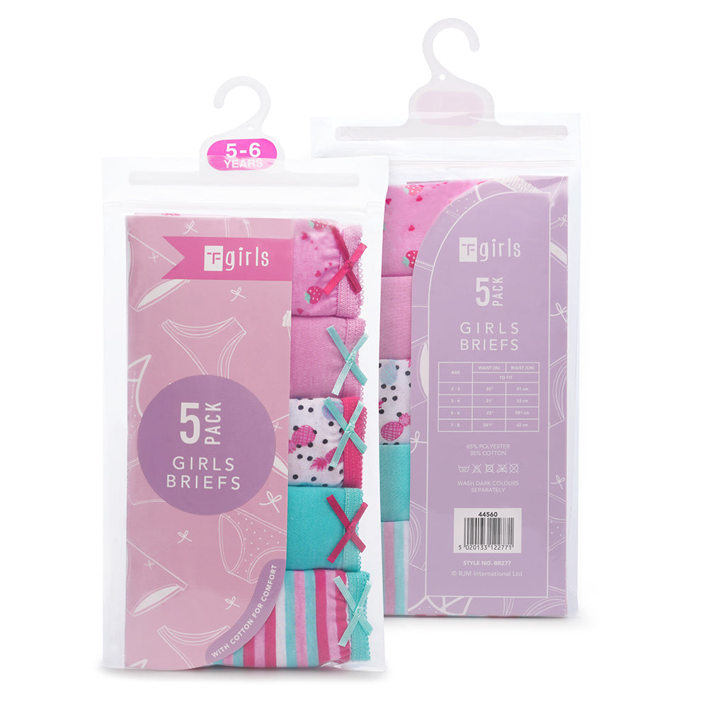 Add a splash of colour and fun to your little one’s wardrobe with this charming 5-pack of girls’ briefs. Featuring playful fruit patterns, these knickers are perfect for everyday wear. Made from a soft and breathable blend of 65% Polyester and 35% Cotton, they offer comfort and durability. Each pair is machine washable for easy care and long-lasting use. The cute satin ribbon trim adds an extra touch of charm, making these briefs both practical and stylish. This value multipack is a fantastic choice for parents looking to stock up on quality underwear for their little girl.