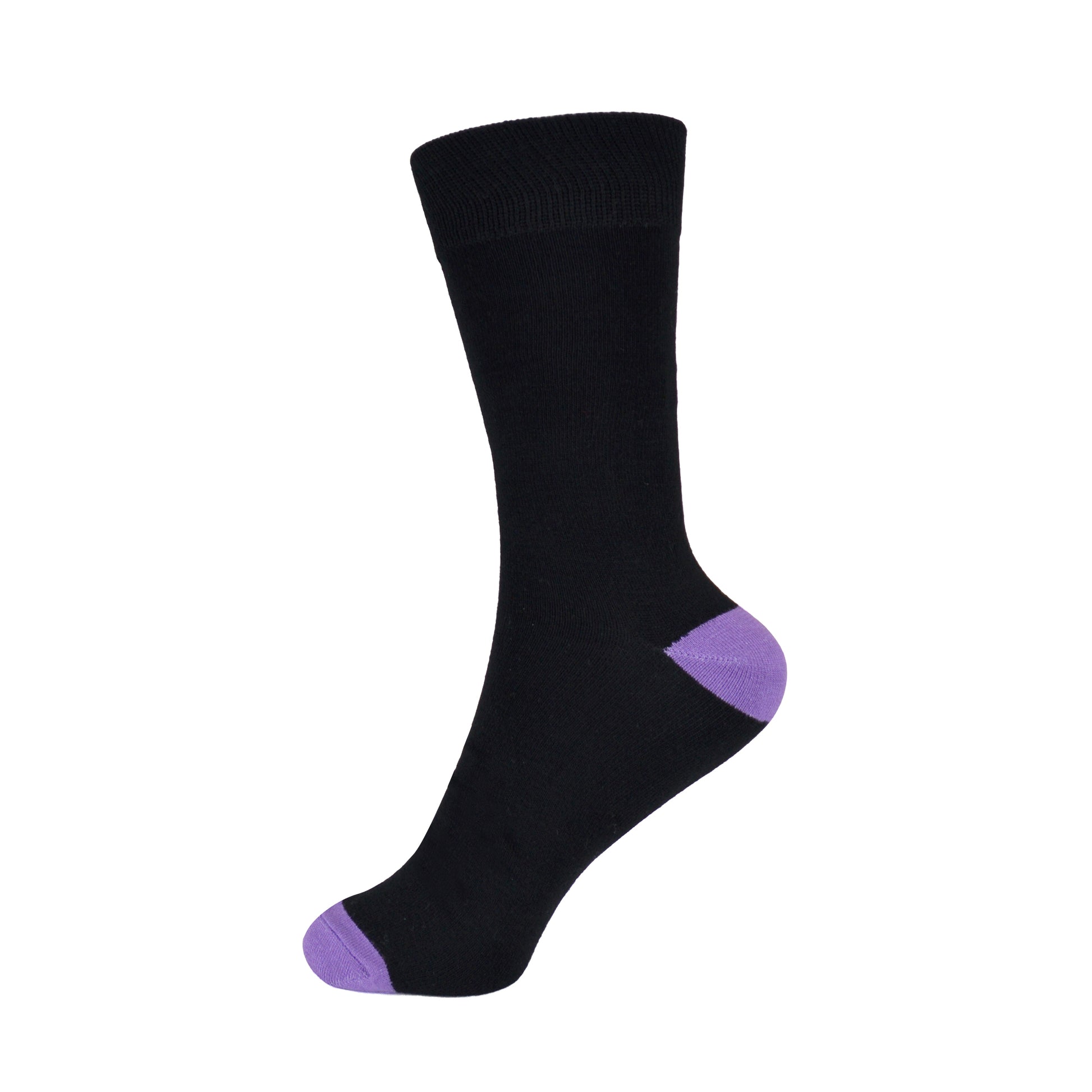 6 Pairs Men's Black Bamboo Socks with Coloured Heels and Toes
