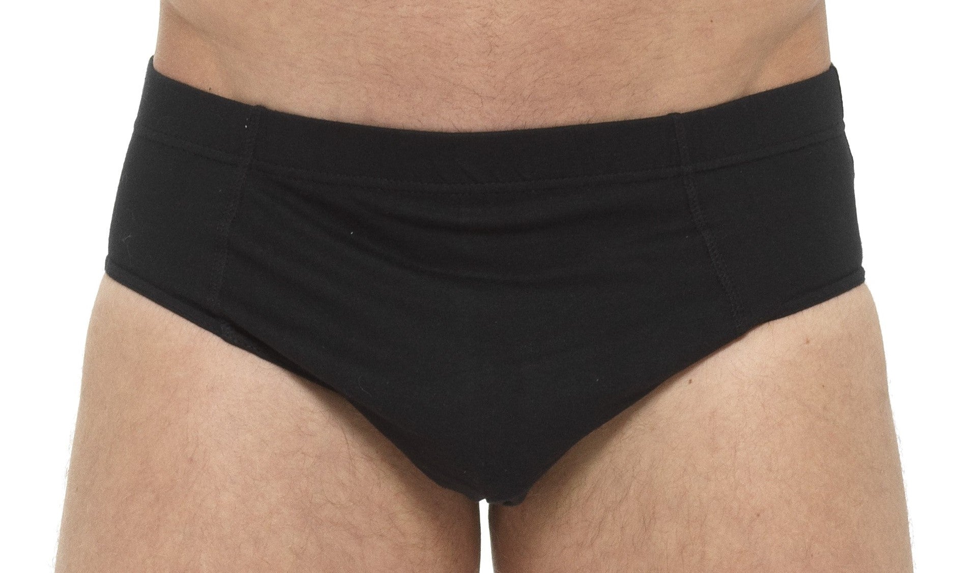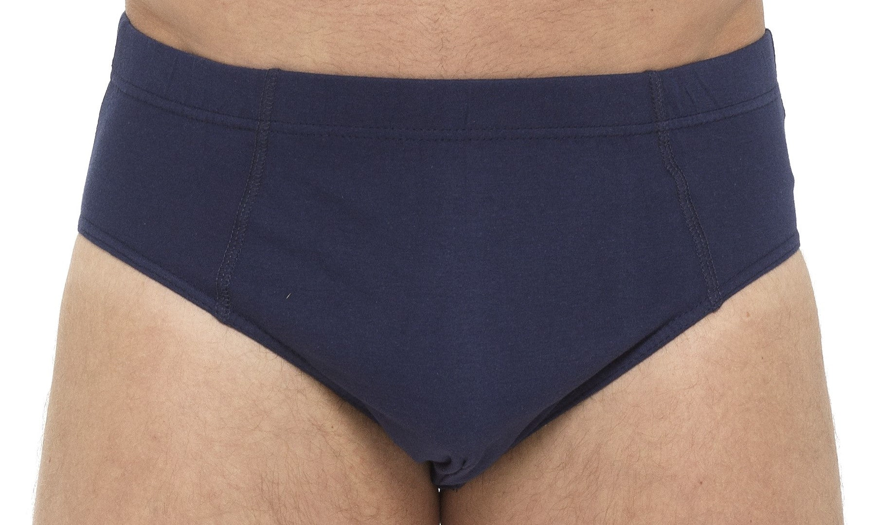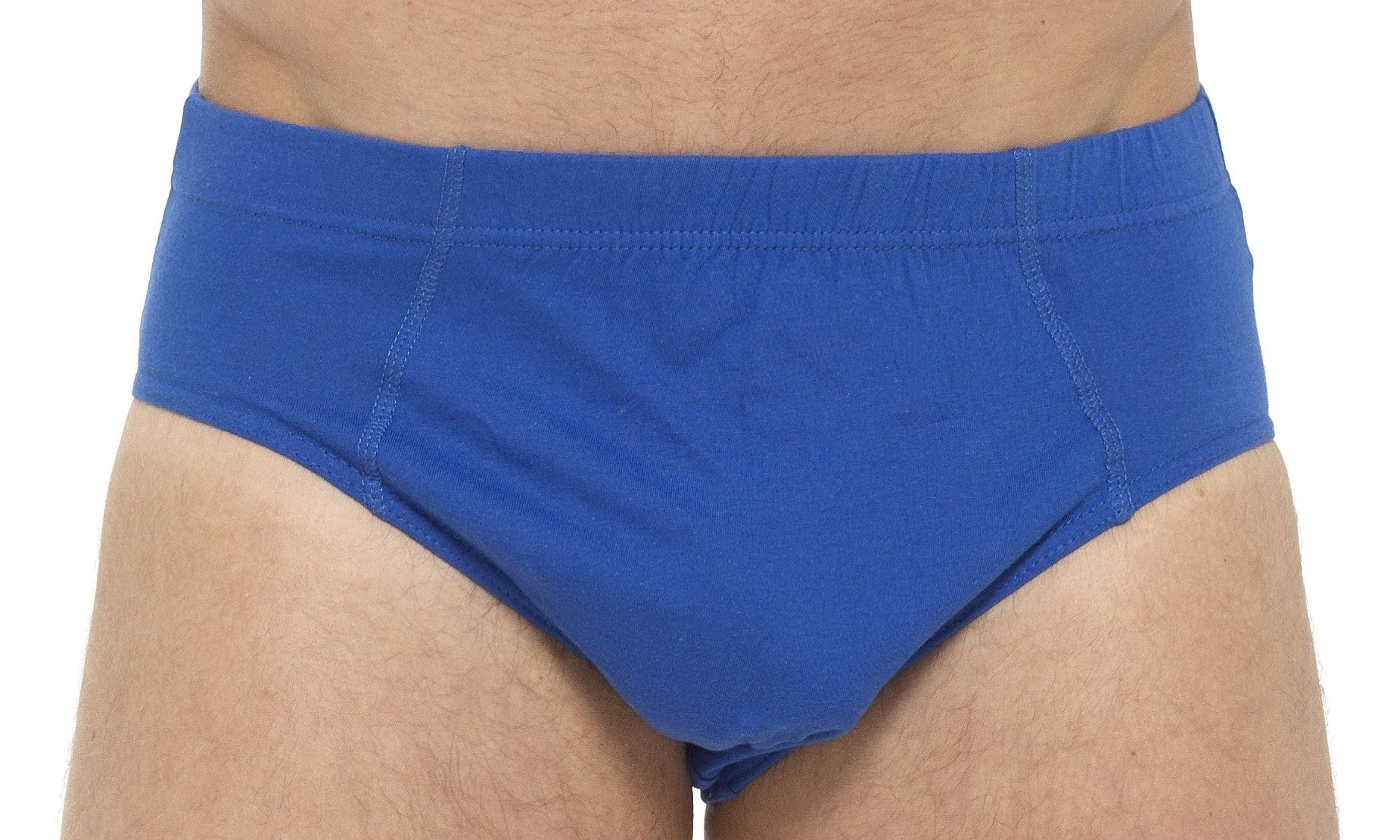 6 Pairs men's cotton briefs. Soft cotton briefs with comfortable 2.5 cm (1") elasticated waistband. 5 different colours - black, dark grey marl, light grey marl, navy blue, bright blue. You receive 2 pairs of black and 1 pair of each of the other 4 colours. Available in sizes M (waist 84-89 cm/33"-35"), L (waist 91-97 cm/ 36"-38"), XL (waist 99-104 cm/39"-41"), XXL (waist 106-113 cm/42"-44"). 100% cotton (light grey marl 66.4% polyester, 33.6% cotton, dark grey marl 65.4% polyester, 34.6% cotton). Machine washable.