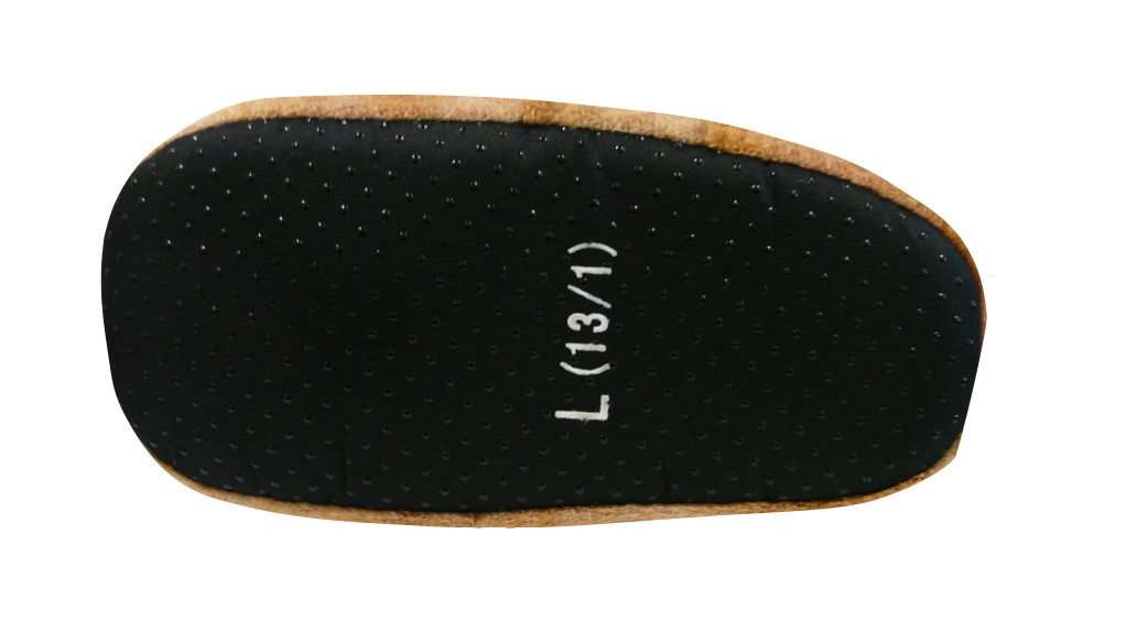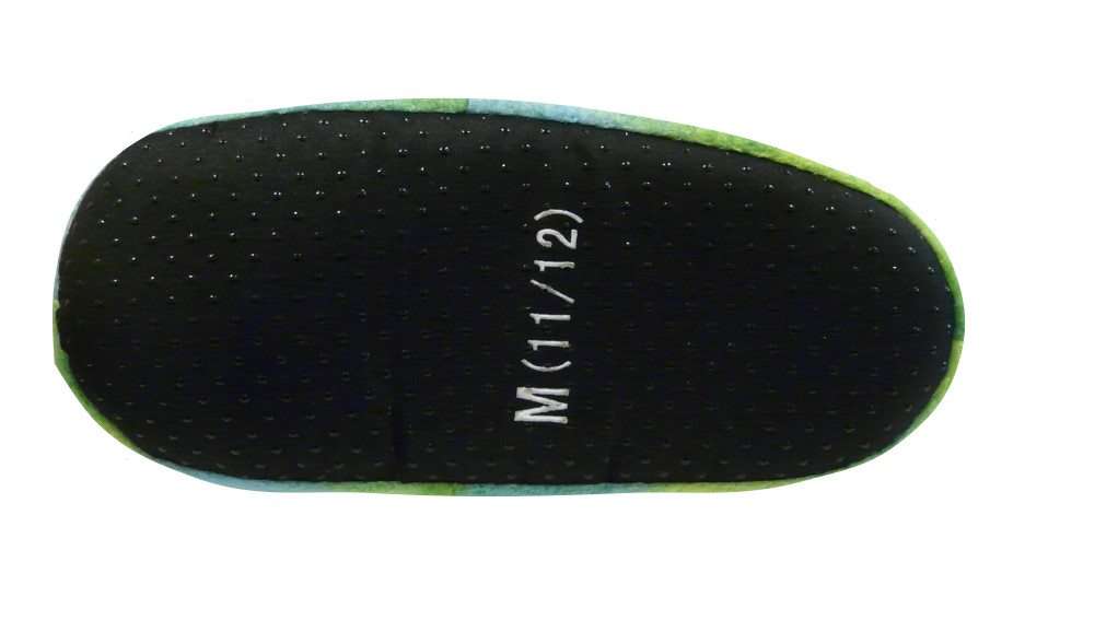 Boys dinosaur head 3D plush slippers. Velour slippers in the shape of a dinosaur’s head with white felt “teeth” and brown felt fringe detail. These soft fleecey lined padded slippers have a cushioned insole to keep feet cosy warm, and black dot grip sole. Available in colours brown or green and sizes Small, Medium, Large, X-Large (UK 9-10, 11-12, 13-1, 2-3)(EUR 27-28, 30-31, 32-33, 35-36)