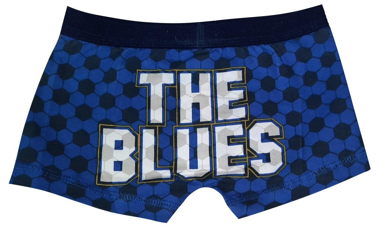 You get 1 pair of Boys Chelsea Football Club Boxer Shorts. Blue Chelsea Boxer Shots with the Chelsea crest on the front and the nickname THE BLUES written on the back in white, these are blue boxers with black hexagonal pattern. The Boxer shorts have a navy blue elastic waistband. No opening or fastening and are just pull on and off.