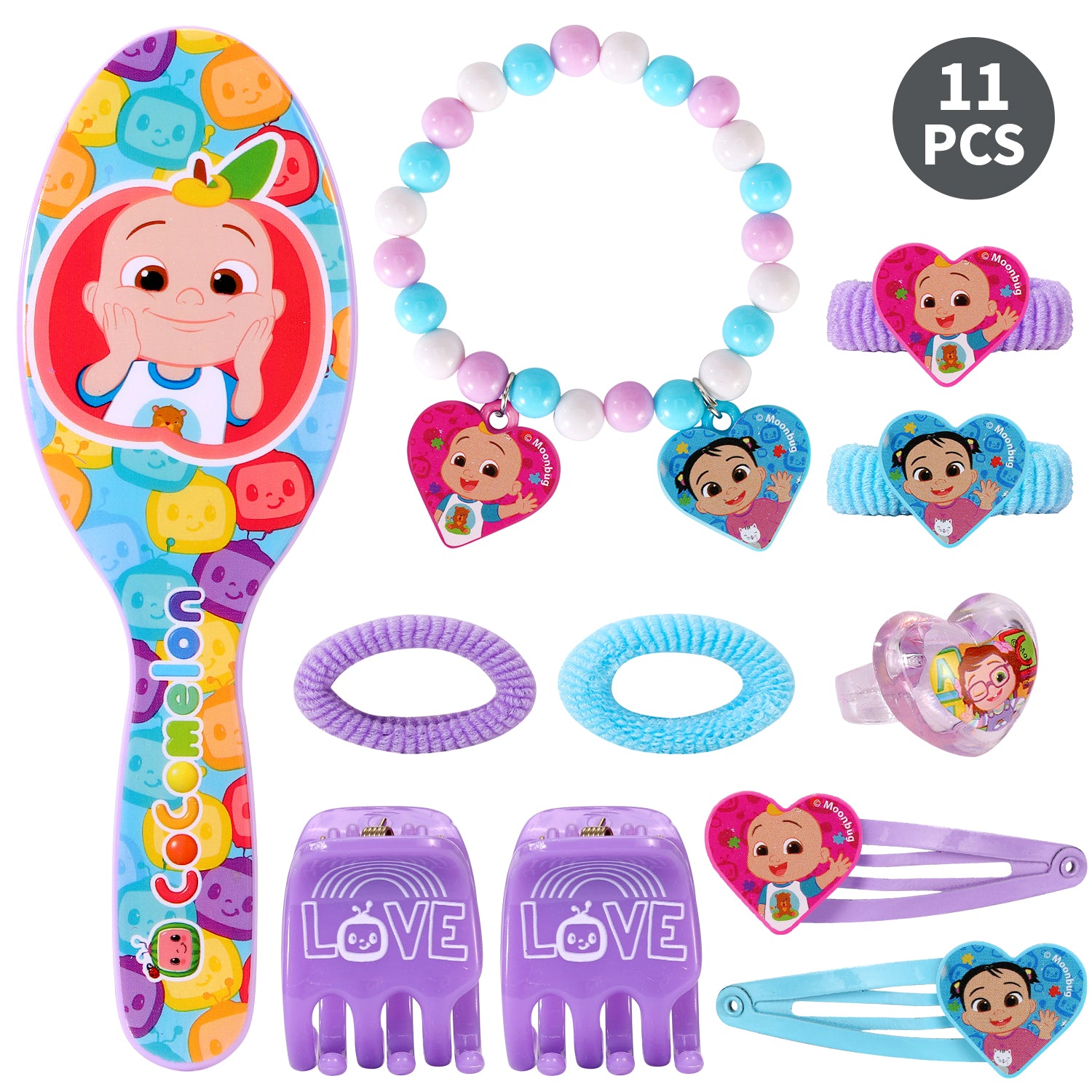 CoComelon Beauty Set for Kids – 11 Piece Hair & Jewellery Accessories with Brush, Clips, Bracelet & Rings – Pretend Play Gift for Girls & Boys – Official CoComelon