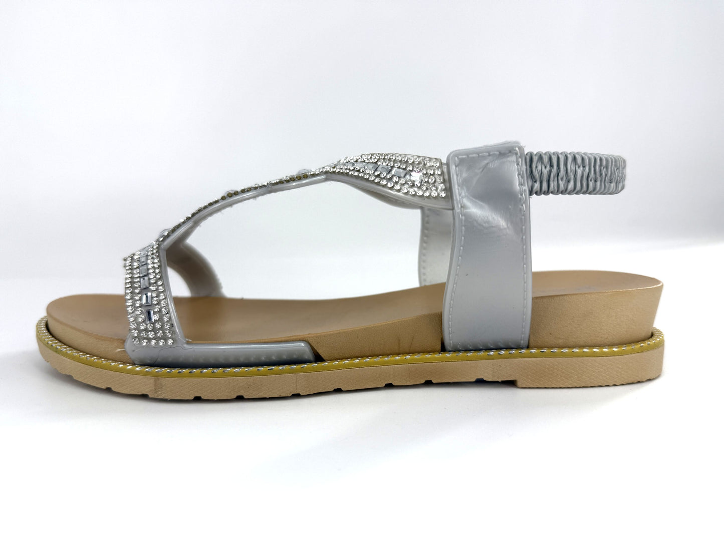 Add sparkle to your summer wardrobe with these stylish jewelled sandals from Dunlop. Featuring a beautifully embellished front strap with crystal-style detailing, these sandals are designed to stand out while keeping you comfortable all day long. The soft cushioned footbed offers lasting support, while the flexible elasticated back strap makes them easy to slip on and off. Crafted with durable PVC uppers and a non-slip sole, they’re both fashionable and practical – perfect for summer holidays, casual daytime looks or dressing up for the evening. Finished with a 3cm flat wedge heel for subtle lift and everyday comfort. Available in classic black or shimmering silver, in UK sizes 3–8.