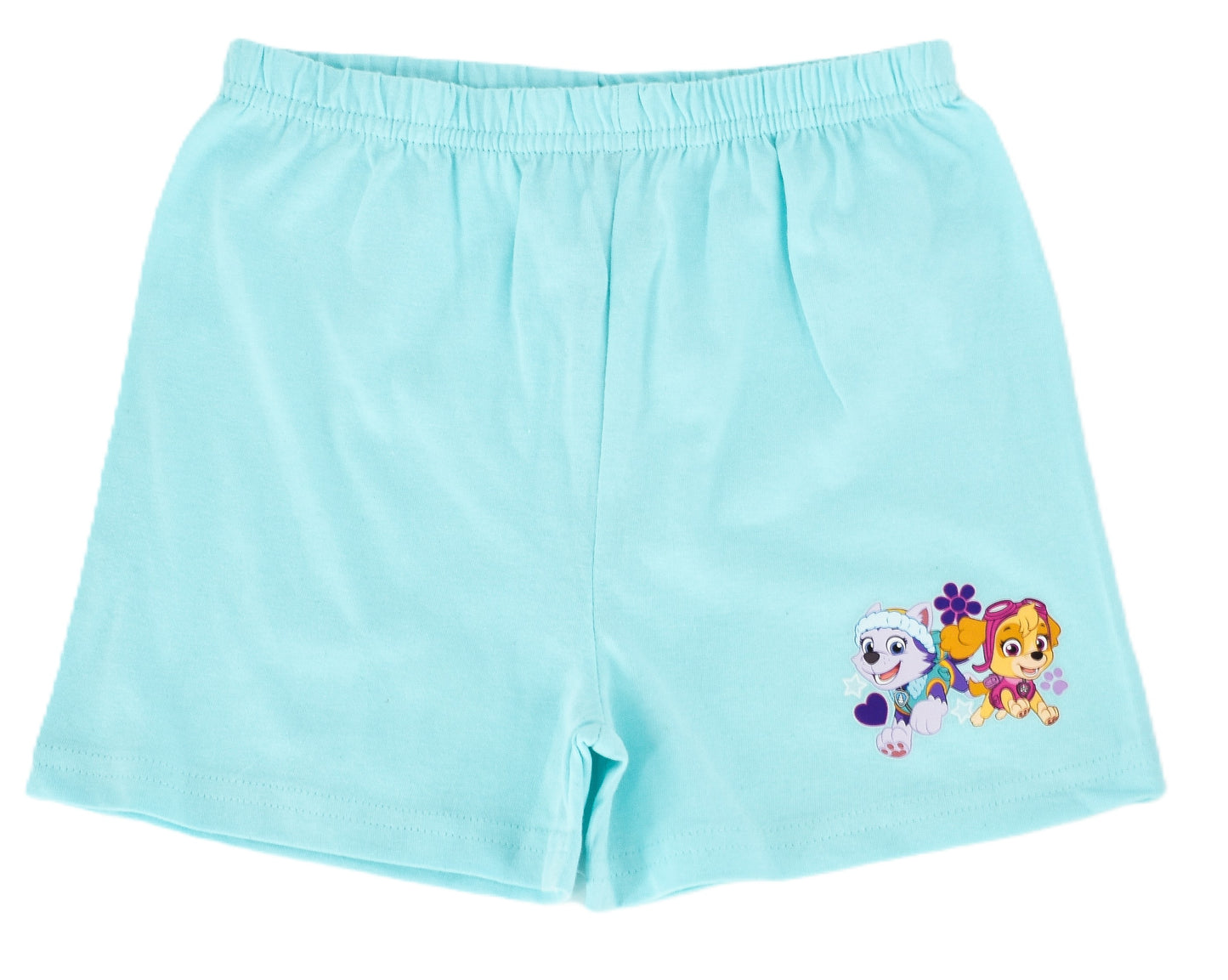 The top is made with soft 100% cotton back and sleeves, and a 100% polyester front panel to keep colours vibrant wash after wash. The matching aqua shorts feature a sweet pup graphic and an elasticated waistband for all-night comfort.