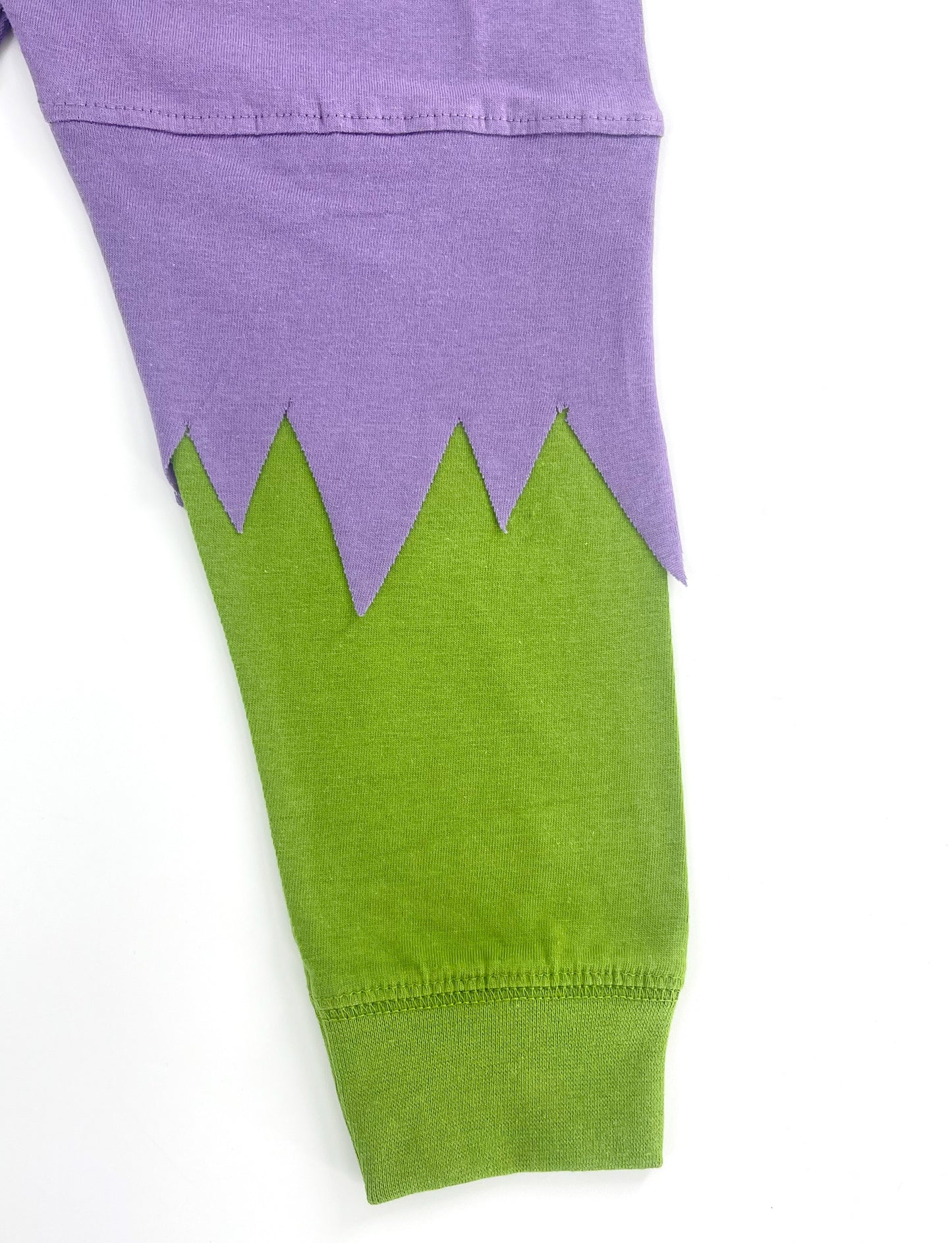 Transform your little one into the mighty Hulk with our pyjama costume set. Long-sleeved top with printed muscles and pants with a ripped effect, providing maximum comfort and style. Perfect for dressing up as their favourite superhero, or just lounging around in their true superhero form. Smashingly fun for ages 2-8!