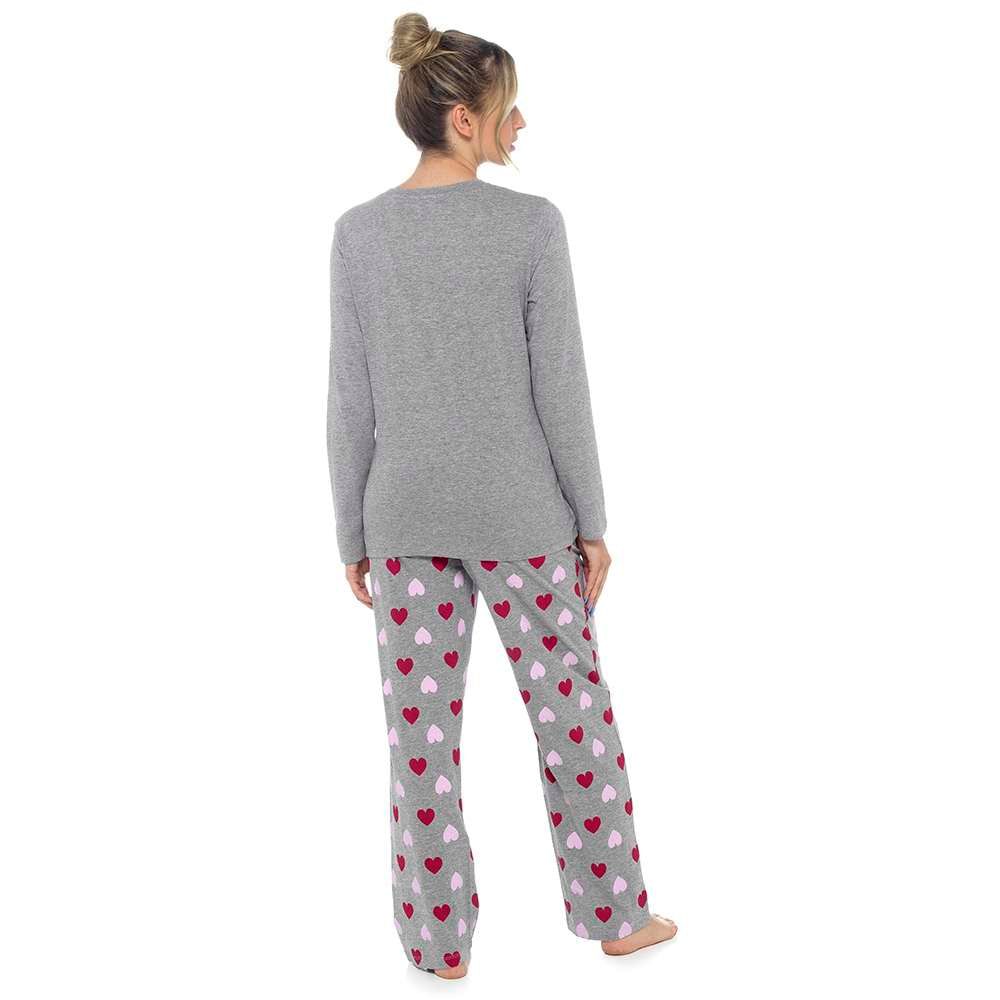 These lovely soft patterned cotton jersey pyjamas come in their own matching drawstring bag - great for holidays, weekends away, sleepovers and hen parties. Ideal as a present for the special lady in your life - mum, wife, girlfriend, sister or daughter. Soft cotton-rich grey marl jersey pyjamas - long-sleeved pullover style top with black eyelash print and gold coloured metallic "Brave enough to dream" - long leg elasticated waist pants with all over pink and red lips print - matching drawstring jersey bag with all over lips print. Made from 85% Cotton, 15% Viscose - Machine Washable. Available in UK sizes 8-10, 12-14, 16-18, 20-22.