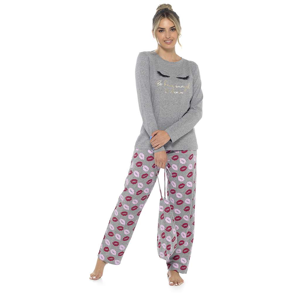 Ladies "Be Brave Enough to Dream" Lip Pattern Grey Cotton Pyjamas in a Bag