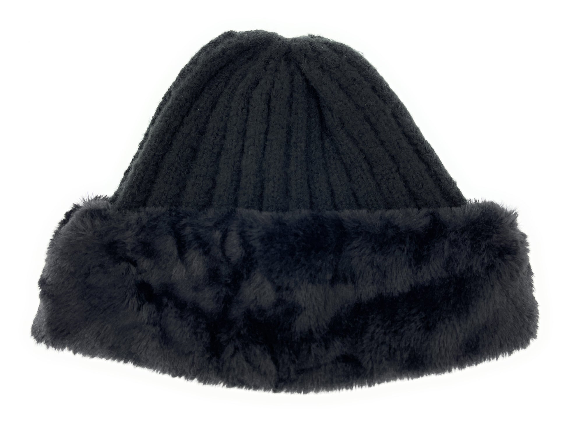 This stylish soft beanie-style knitted hat with a soft faux fur turn-up will keep your head warm in colder weather - perfect as a gift for the woman in your life at Christmas or birthdays.