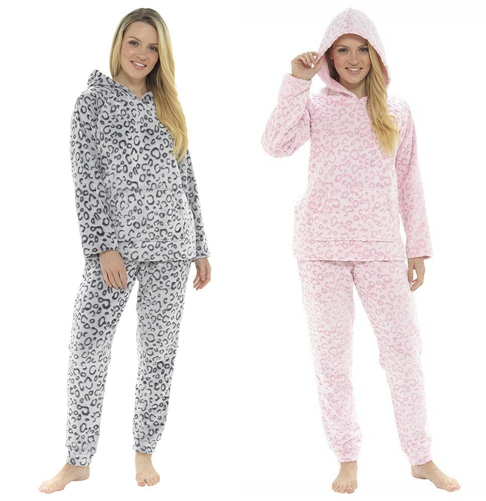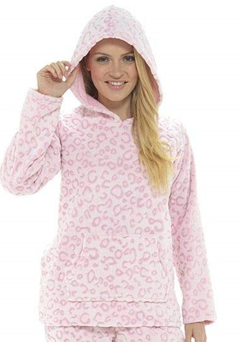 These lovely soft warm fleece hooded twosie ladies two piece pyjama set with all over embossed leopard print, are a soft fluffy fleece feel perfect for the colder months or when you have to turn the heating down due to the current energy price hikes! So that could be all year round with the good old British weather.
