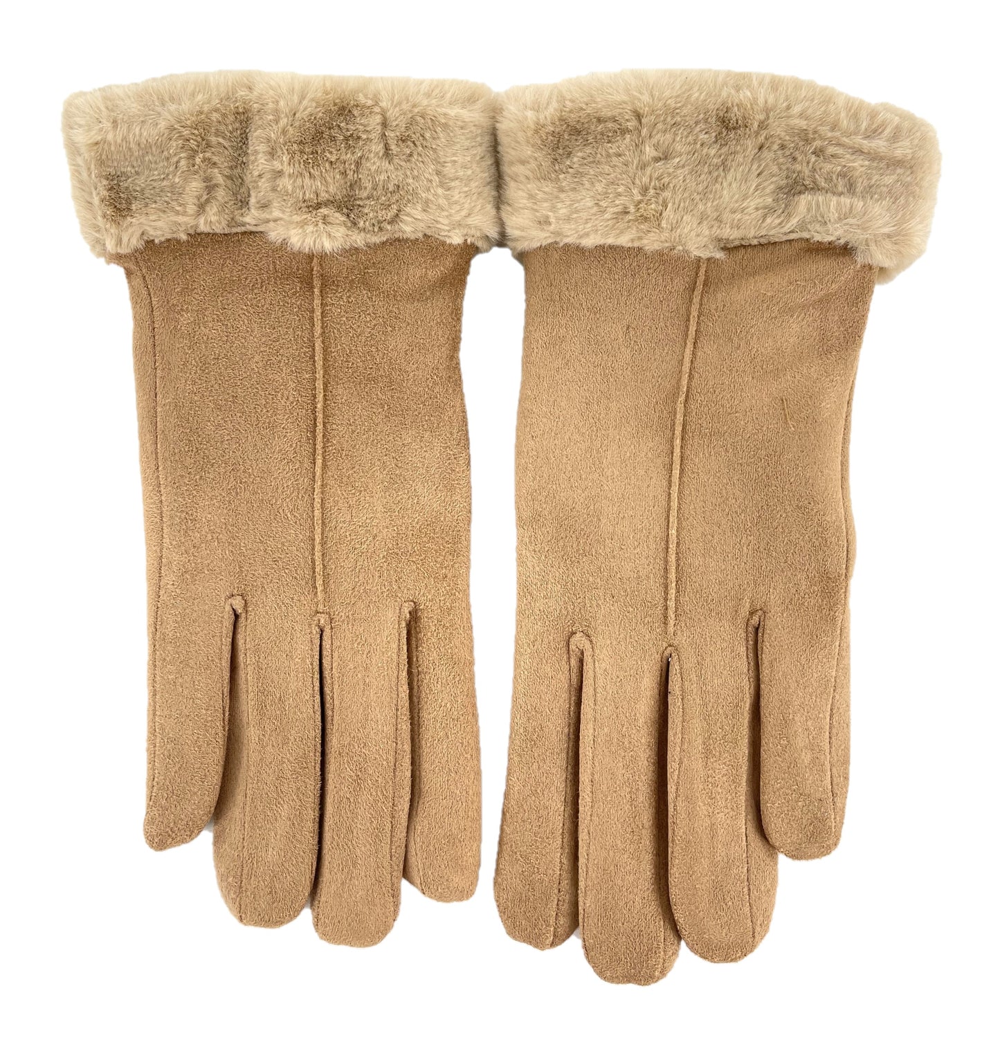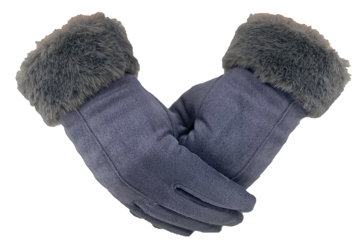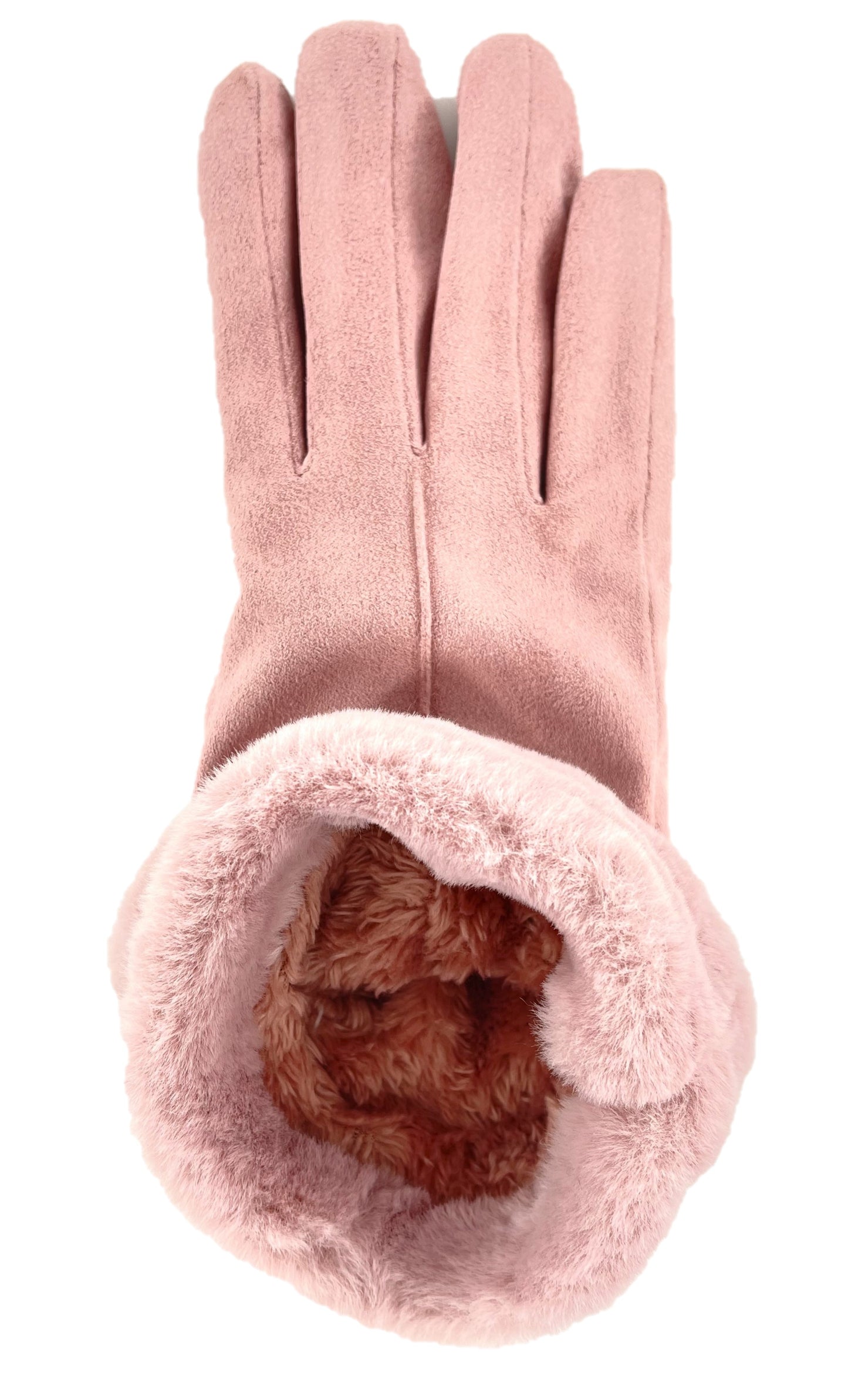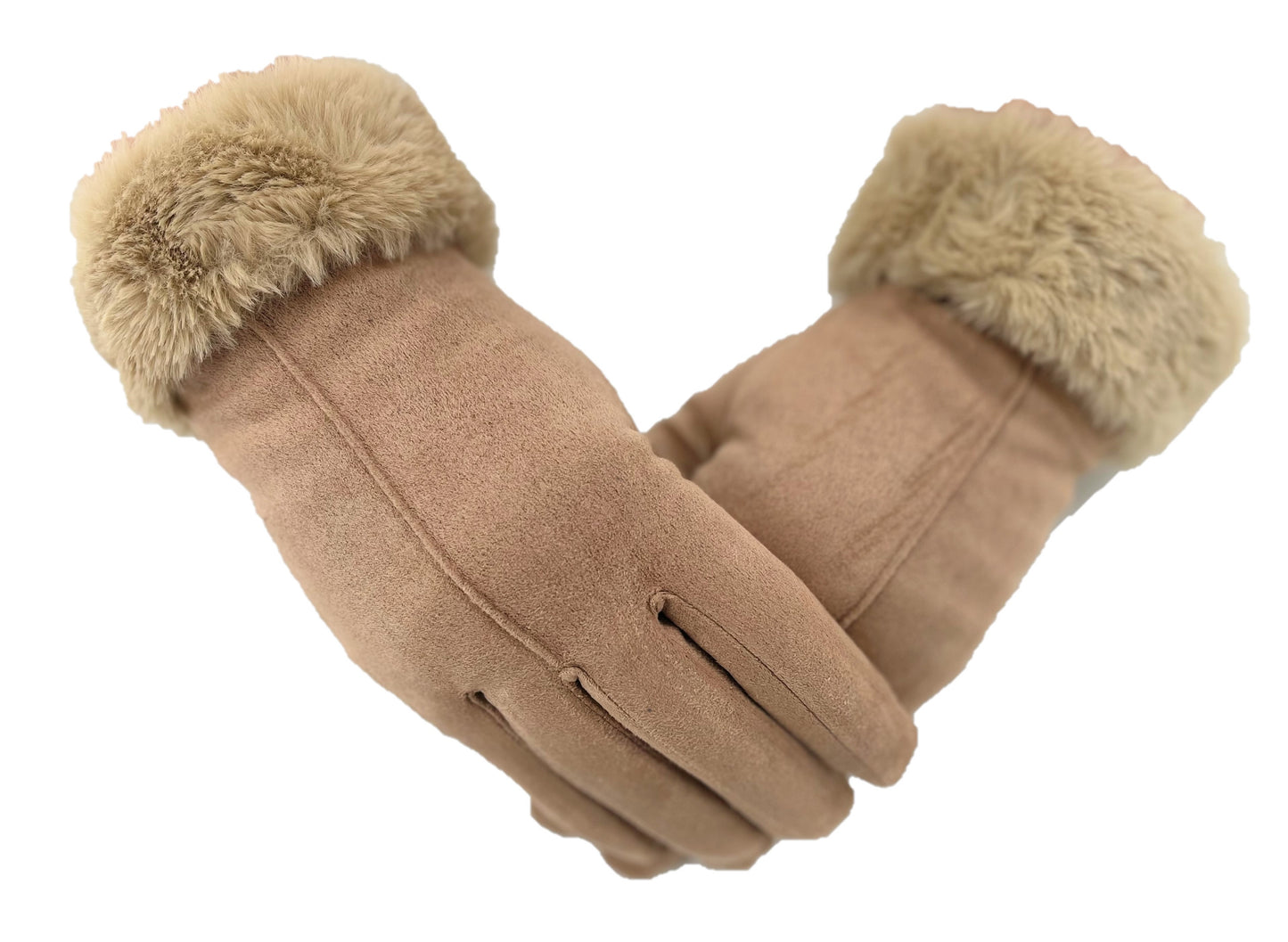 - Look stylish and stay cozy with these luxuriously soft ladies gloves. Crafted from suedette and featuring faux fur trim and teddy bear fleece lining, they ensure warmth and comfort all winter long. Wrap yourself in luxurious warmth and step out in style!