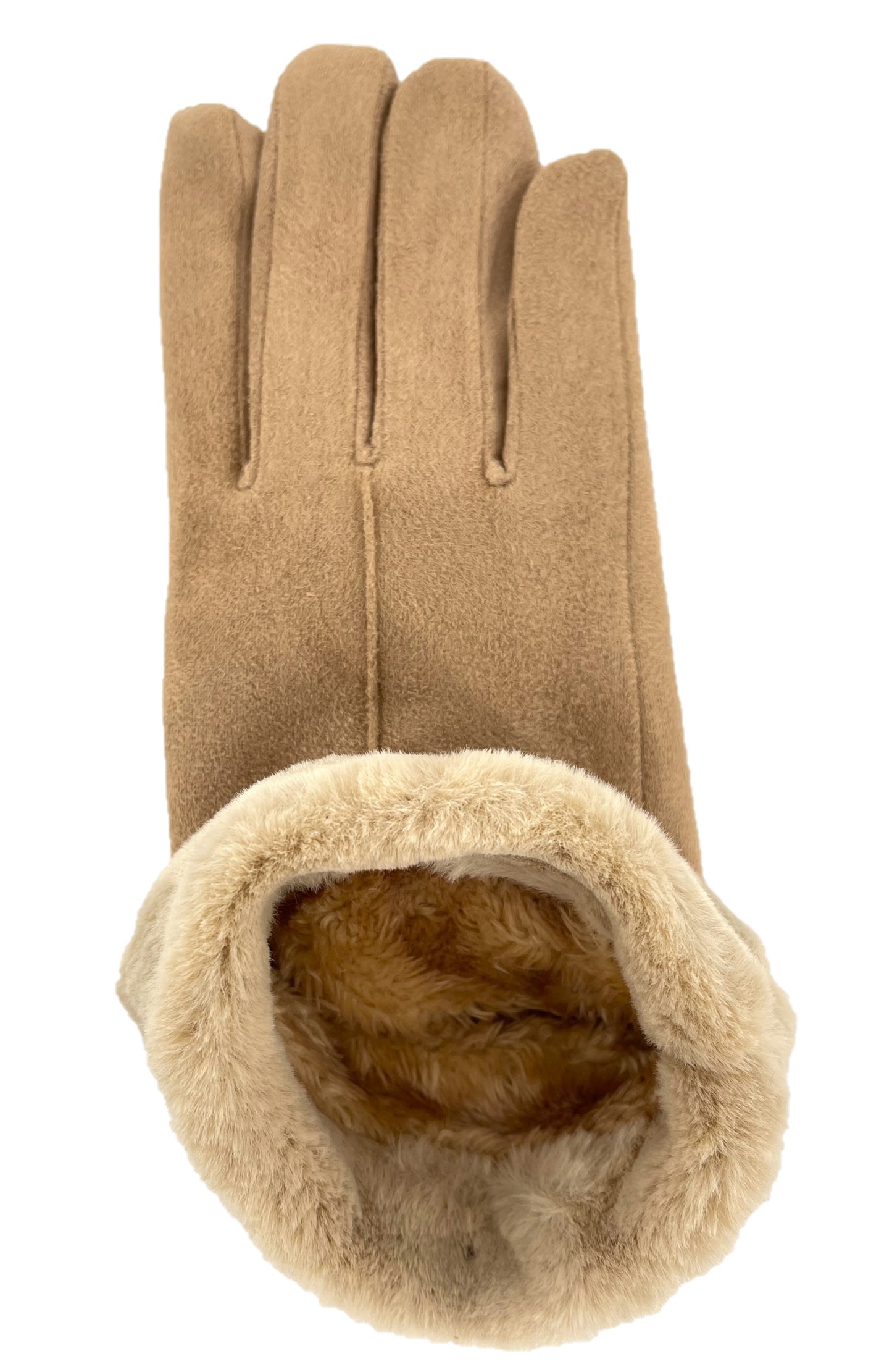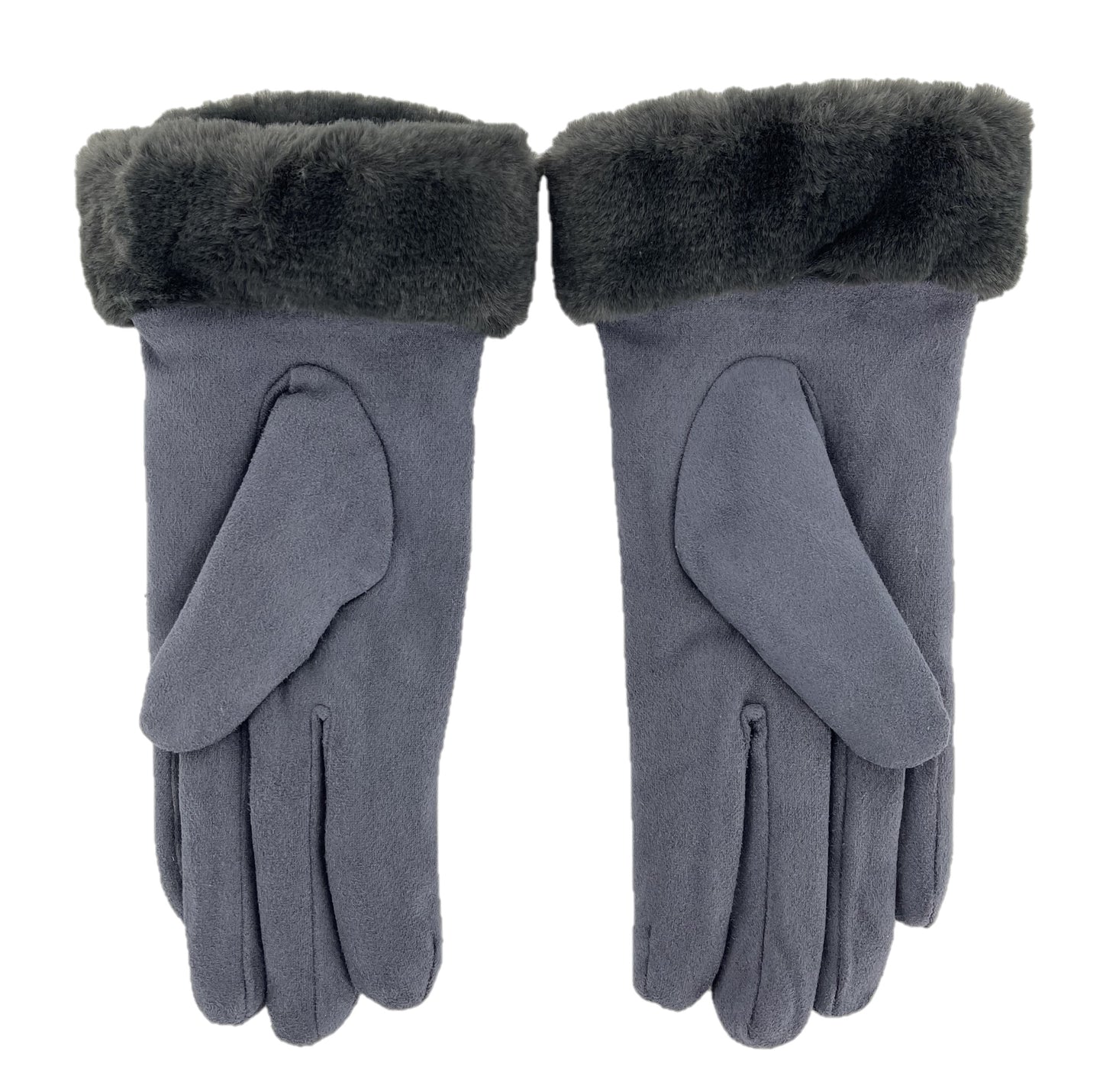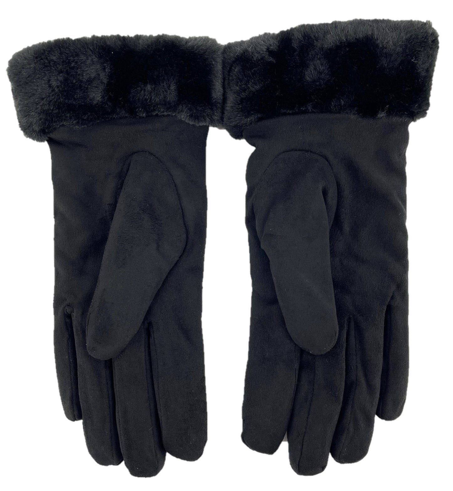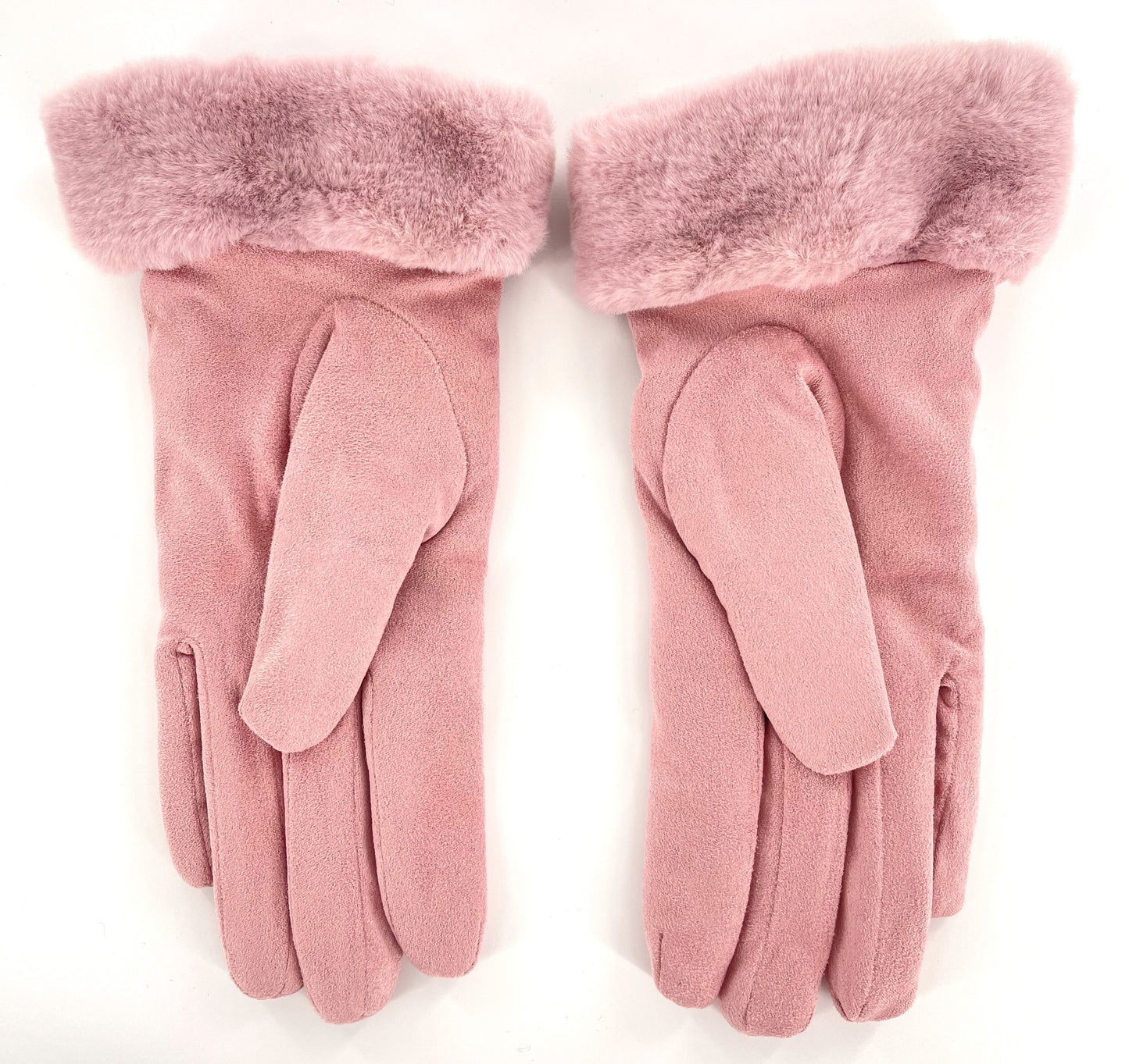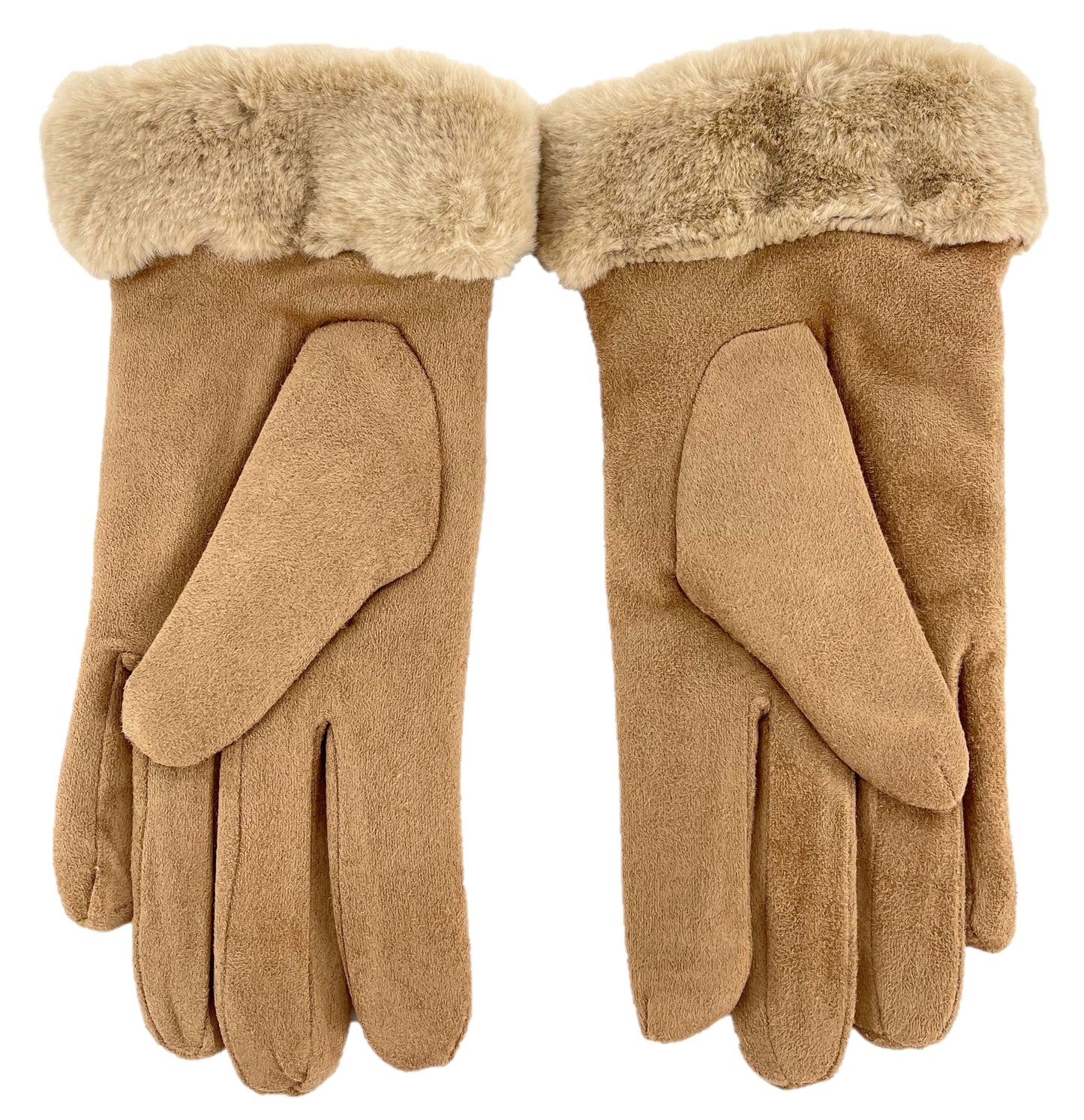 - Look stylish and stay cozy with these luxuriously soft ladies gloves. Crafted from suedette and featuring faux fur trim and teddy bear fleece lining, they ensure warmth and comfort all winter long. Wrap yourself in luxurious warmth and step out in style!