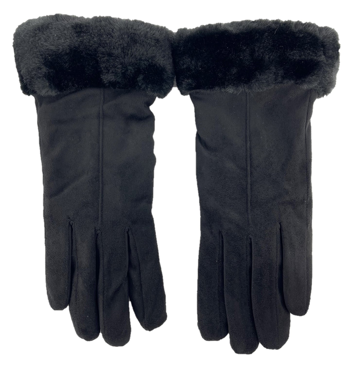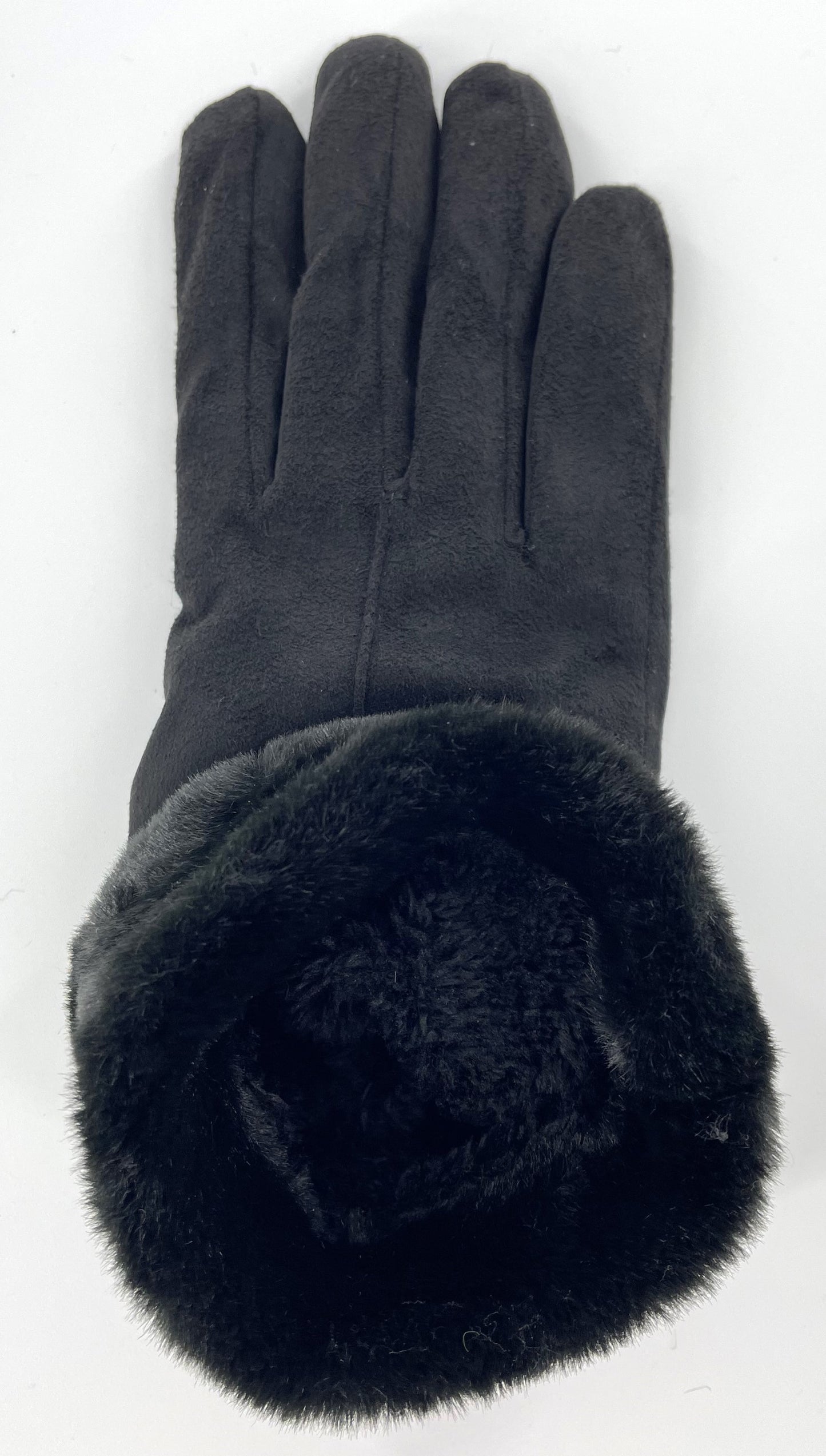 - Ladies supersoft suedette gloves with sherpa fleece lining and faux fur cuffs. These high quality gloves have elastane for comfort and stretch