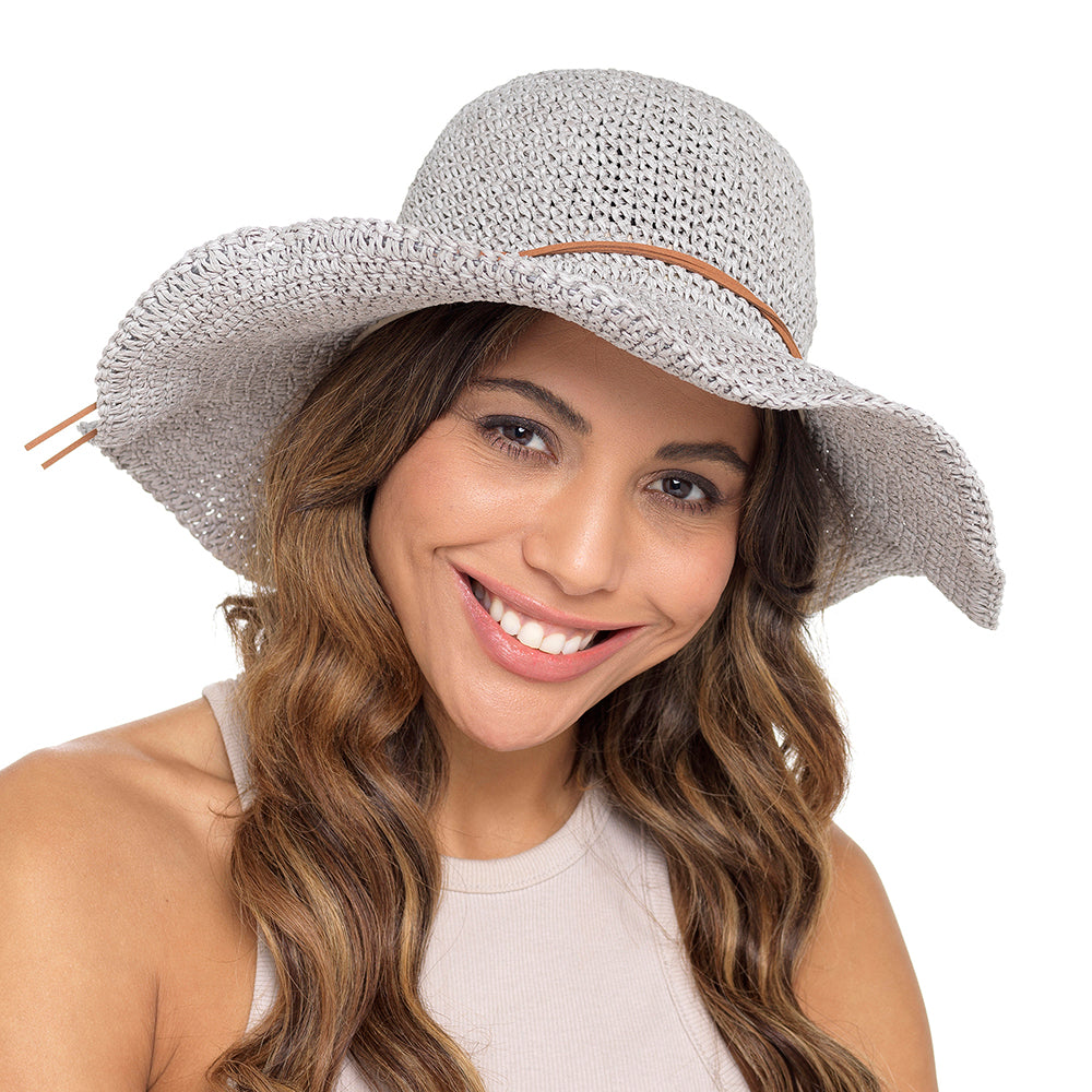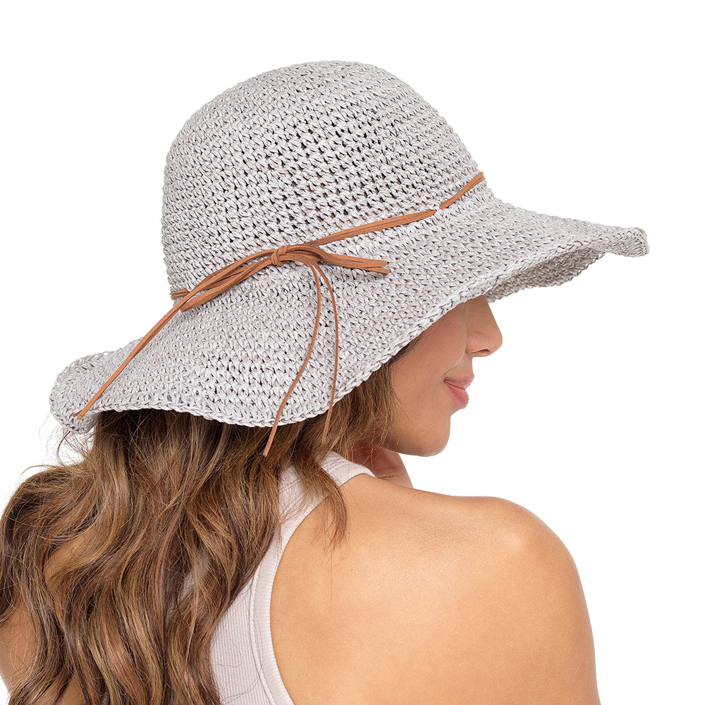 - DESIGN – this lightweight paper straw hat is designed with a wide brim to shade your face, neck and ears from the sun. The leather-look thongs lace through the hat and are tied to form a bow at the back of the hat. A fashionable and stylish floppy summer hat- ideal for many occasions from beach holidays to city breaks or simply for shading the face when sunbathing in the garden