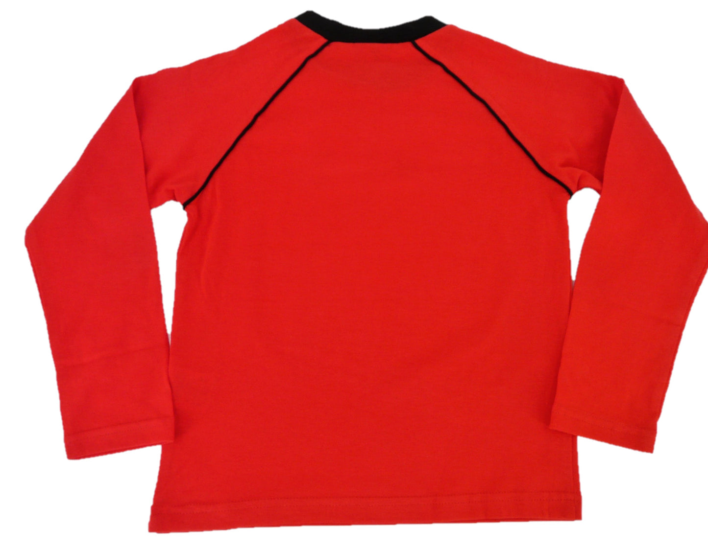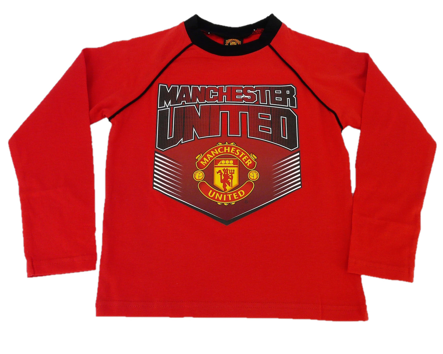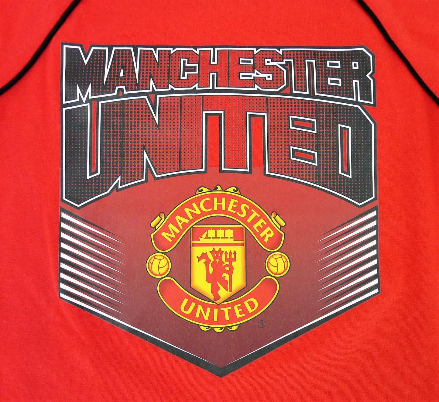 Great for any fan of Manchester United Football Club. This two piece pyjama set consists of a long sleeved top and long leg pants. The long sleeve top is predominantly red, with a black neck band and black piping detail on the front.