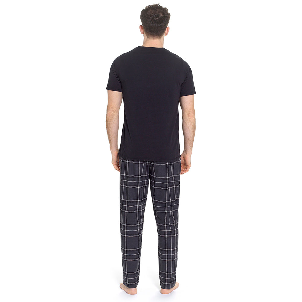 Men’s Short Sleeve Pyjama Set – Cotton Blend Top & Fleece Check Pants
