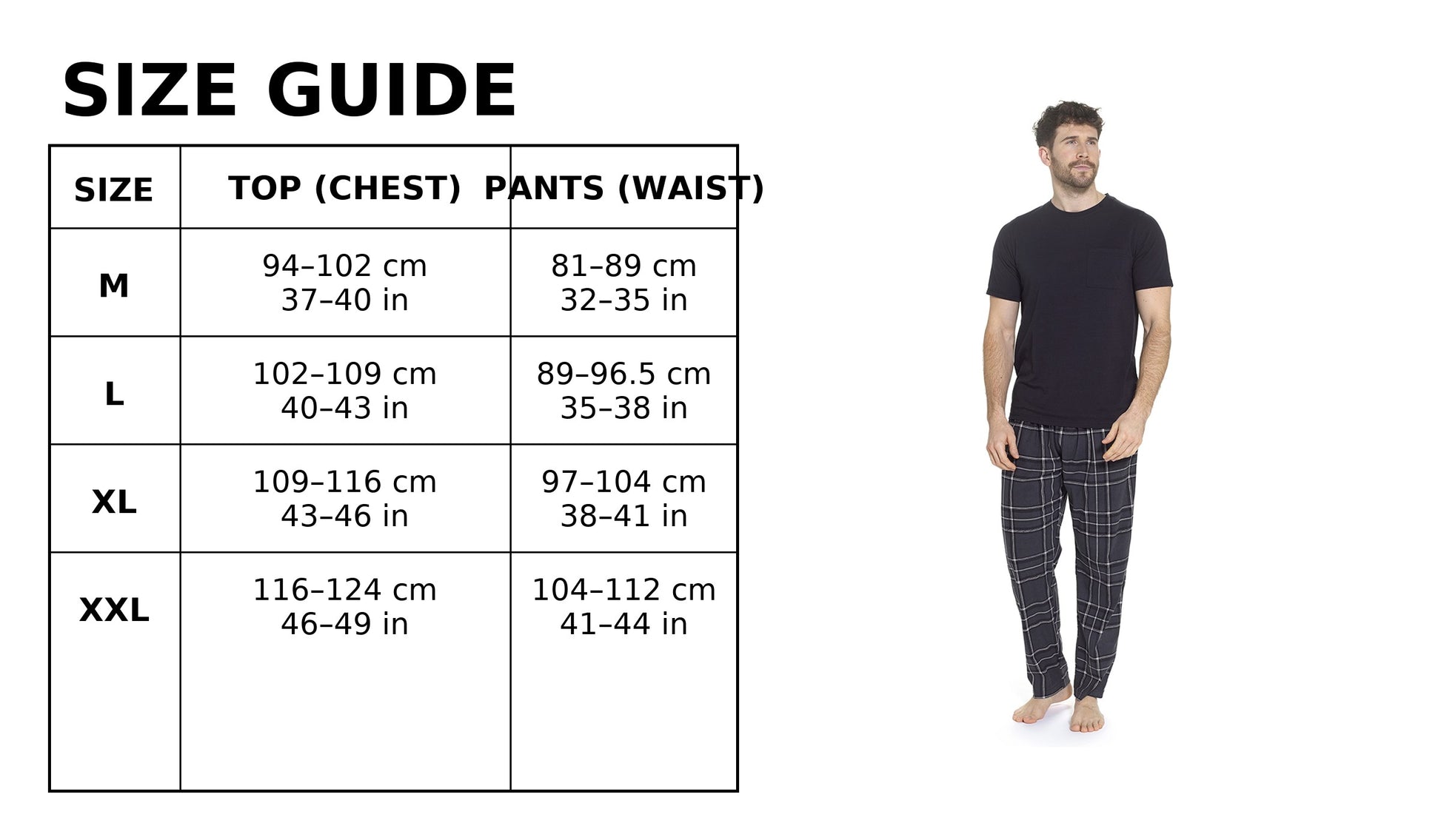 Mens Pyjama Set Jersey Top Fleece Check Pants Drawstring Waist M–XXL