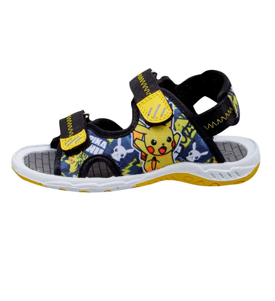 officially licensed Pokémond branded boys sports sandals featuring the character Pikachu. Black uppers with yellow and multicoloured Pokémon pattern. 2 adjustable hook-and-loop straps ensure a comfortable secure fit. Yellow and white non-slip soles. Padded heel strap. These cool sandals are great for wearing in warmer weather - perfect for holidays. They would make a great gift for any little Pokémon fan. Available in UK Kids sizes 6-12.