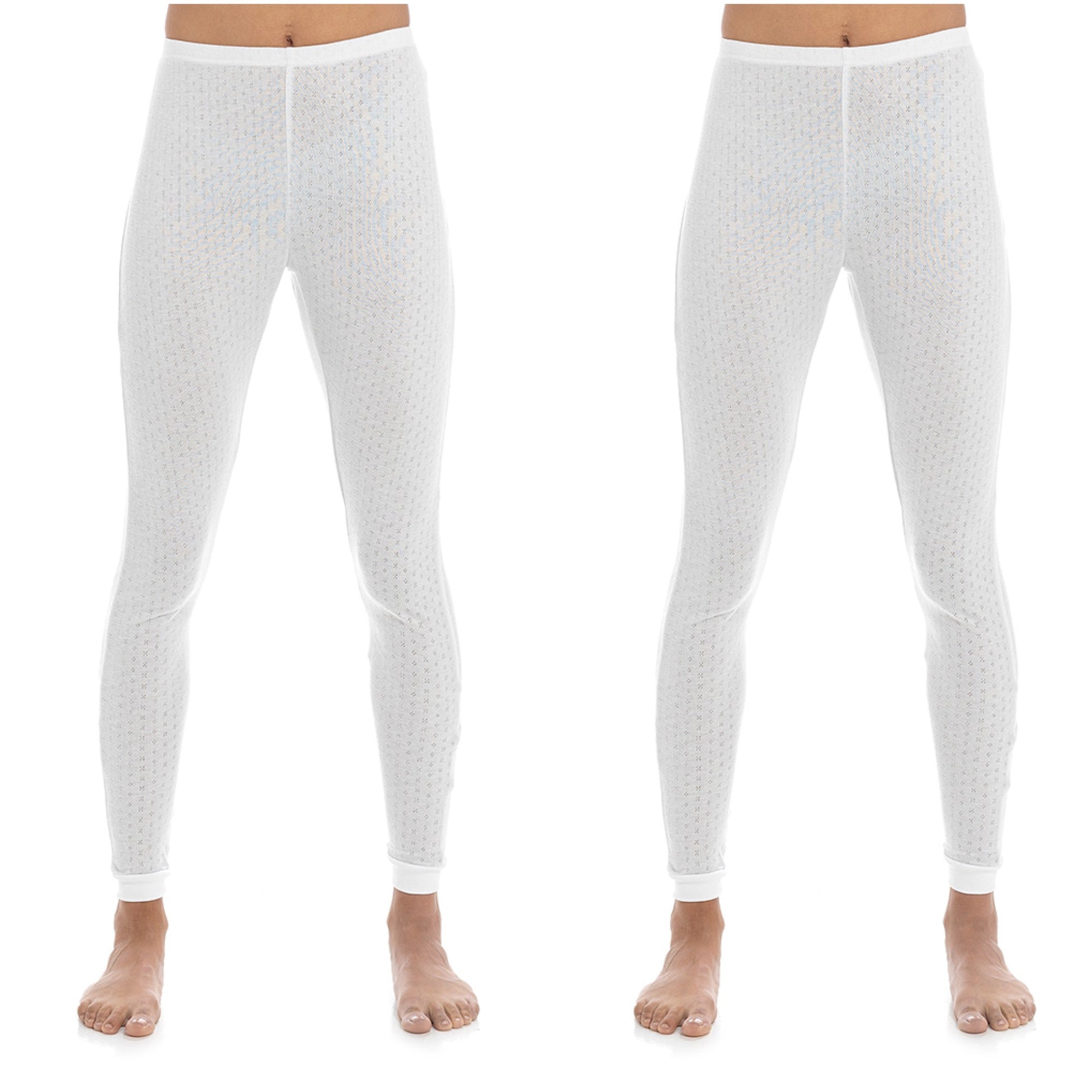 Women's 2 Pack Thermal Leggings – Soft Pointelle Knit – Full Length Long Johns